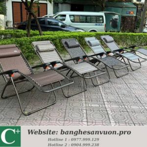 - Vật liệu: Khung thép sơn tĩnh điện, vải lưới Textilene